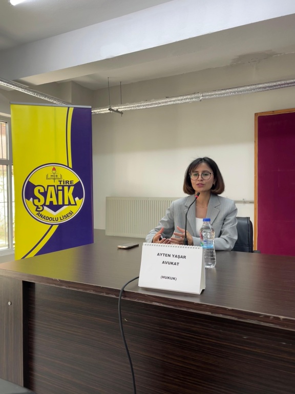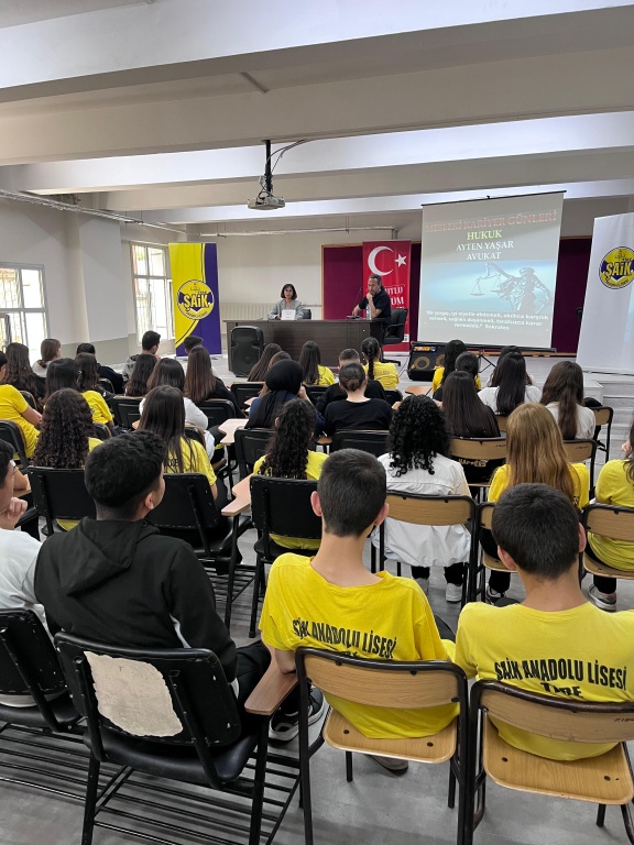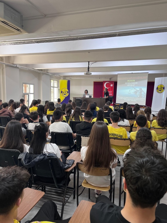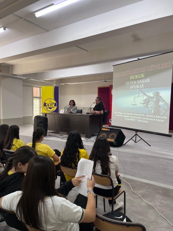 Okulumuz Rehberlik Servisinin düzenlediği meslek tanıtım günlerinde meslek elemanlarını okulumuza davet etmeye devam ediyoruz. Bugün tanıtılan bölüm “Hukuk” bölümüydü. Öğrencilerin merak ettikleri konuları doğrudan sorarak aktif öğrenme sürecine katıldıkları, farkındalık kazandıkları, motivasyon artırdıkları, gerçek hayatla bağ kurdukları, rol model edindikleri, kariyer planlamasına katkı sağladıkları bu günde Avukat Ayten YAŞAR’ ı misafir ettik. Okulumuz Mesleki Kariyer Günlerine verdiği katkılardan dolayı teşekkür ederiz.